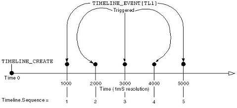 - When the TIMELINE_CREATE function is executed, the timeline starts at zero and begins counting. When the timer value equals a value in the TIMES array, a TIMELINE_EVENT is triggered.